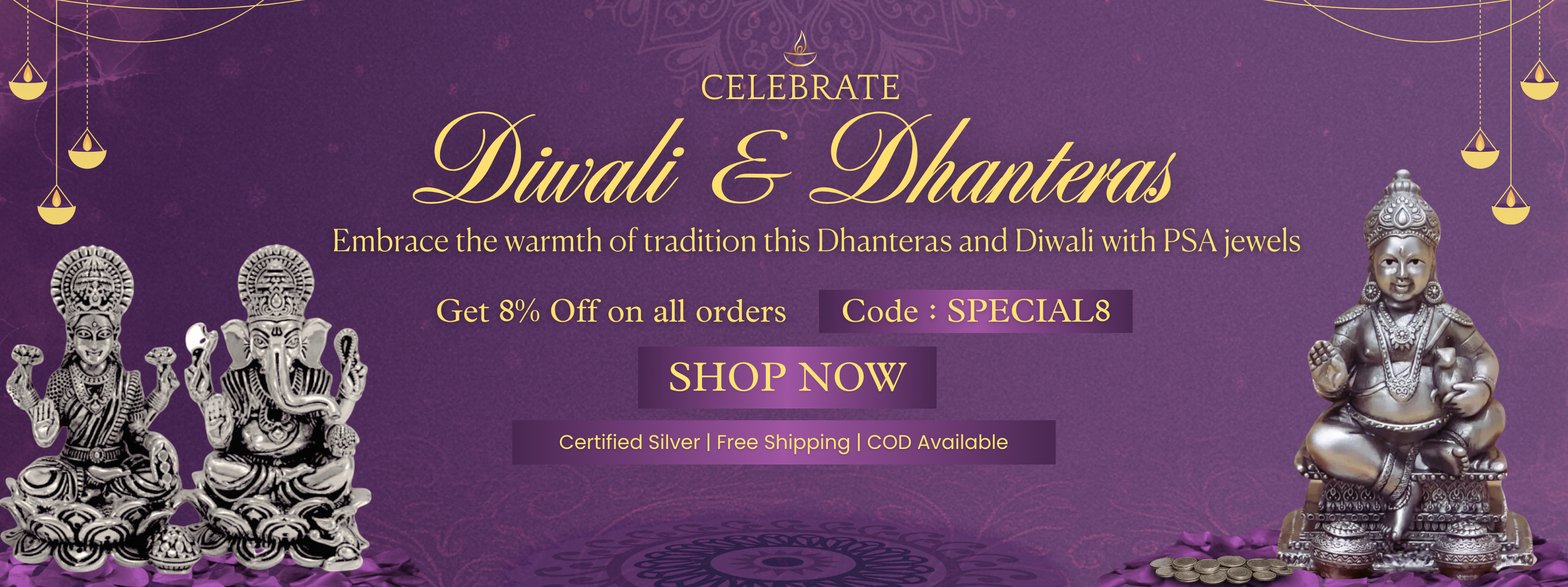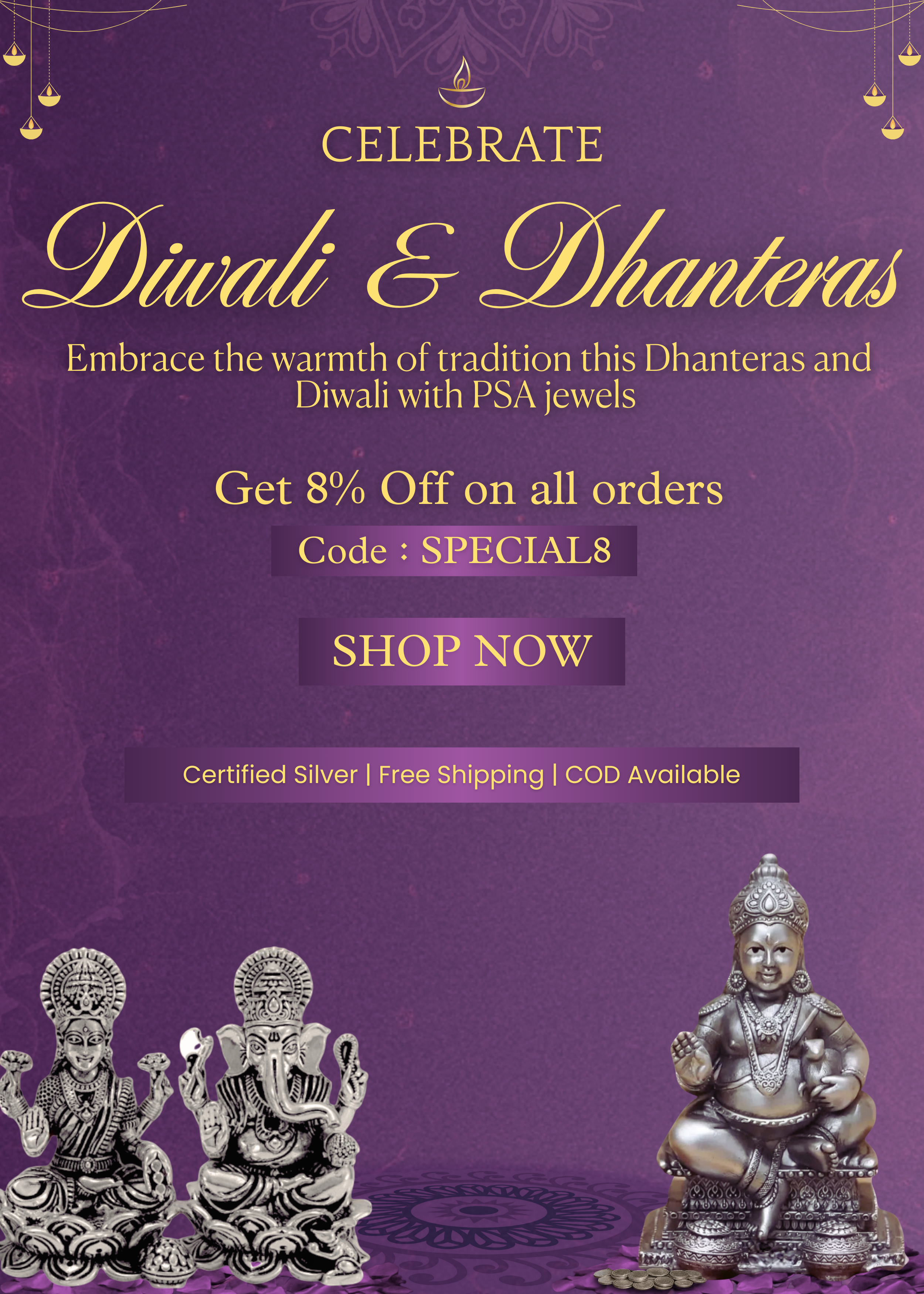 PSA Jewels: A Symphony of Style and Spirituality. Explore our captivating silver jewellery collection that seamlessly blends chic elegance with enduring craftsmanship. From intricate necklaces to divine silver pooja samagri, we offer a holistic range for every facet of life.